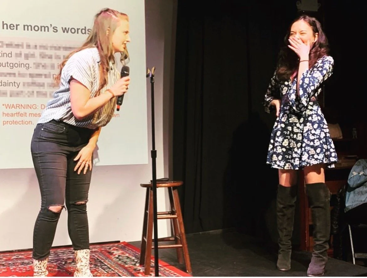 As the New York City host, Anne-Marie leads the crowd through the powerpoints and Q + A sessions interweaving her stories of dating on the apps, why “Musical Theatre Fuccbois“ are a special breed, and how she found love by dressing up as Dr. Phil for Halloween in 5th grade.